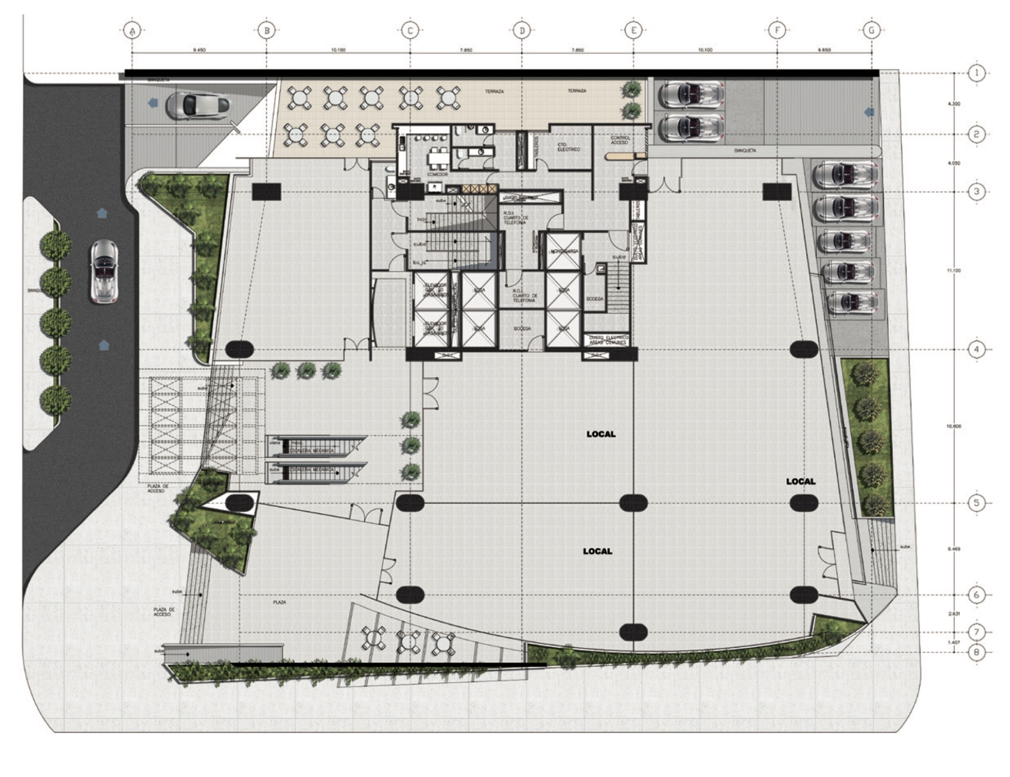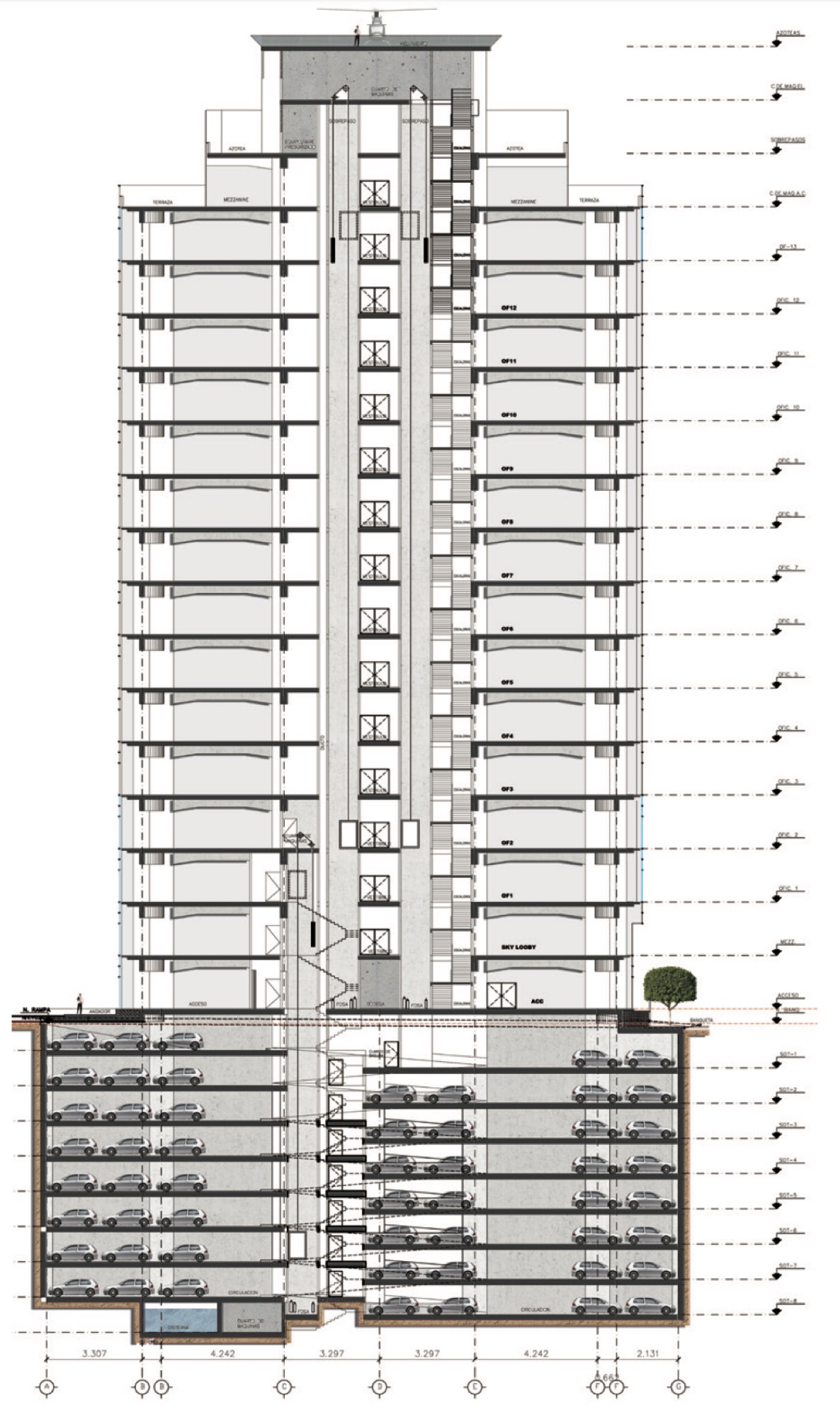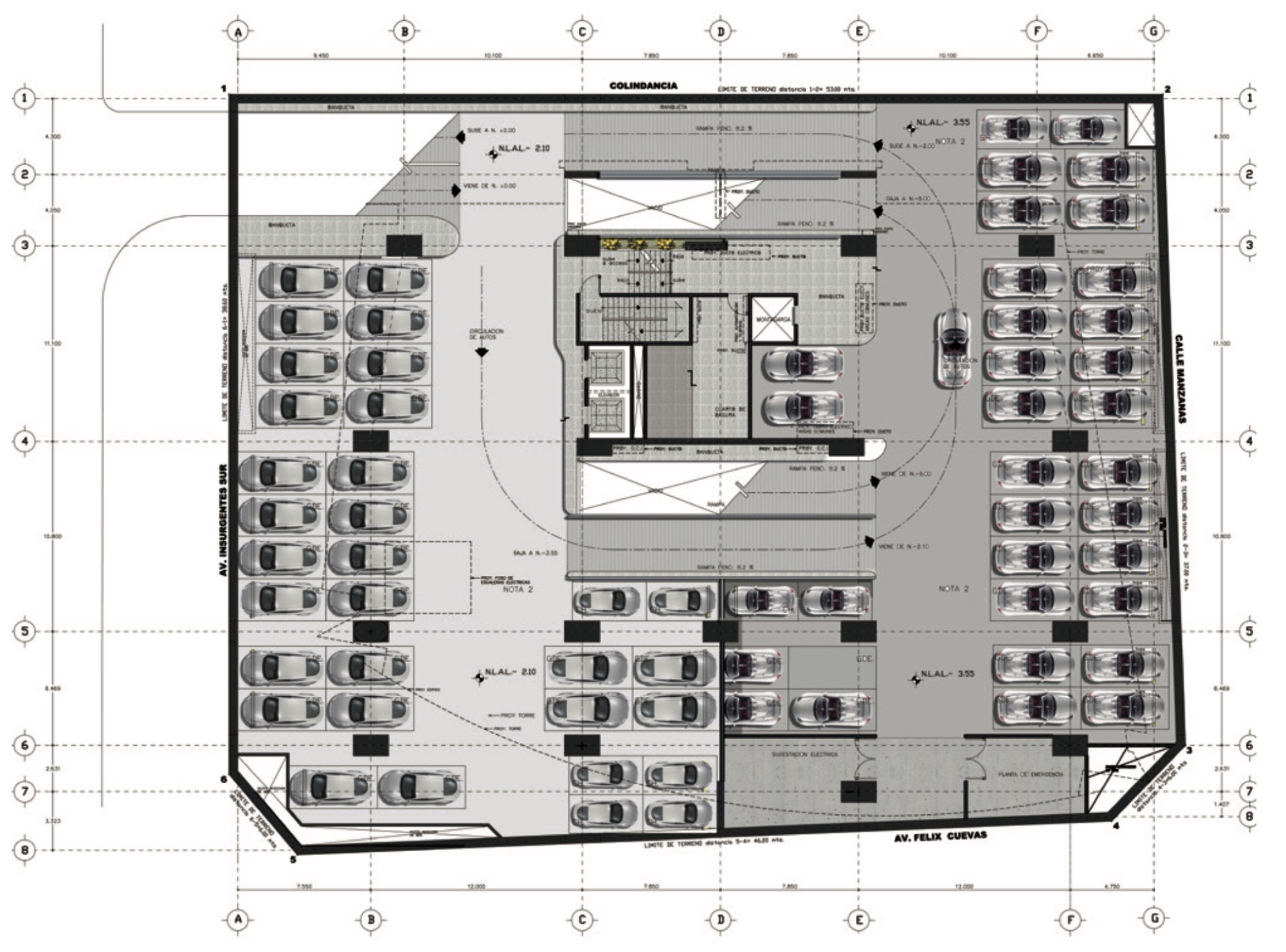 El proyecto arquitectónico contempla generosas alturas, además de claros libres, garantizando así un porcentaje alto de eficiencia.