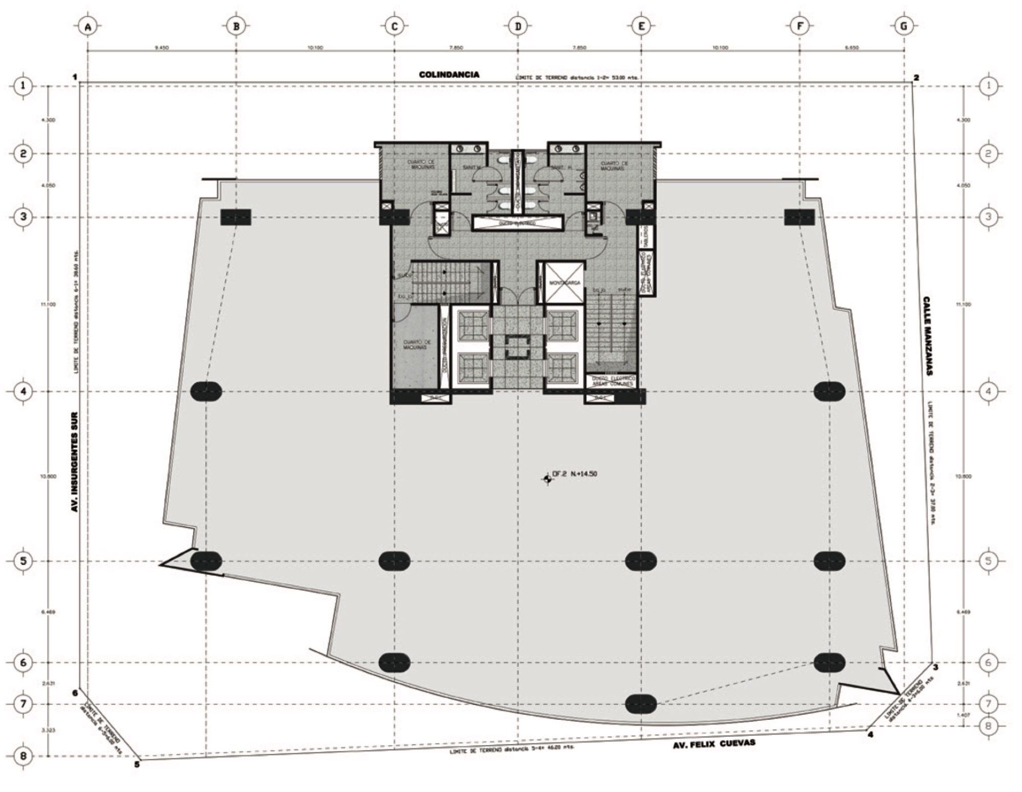 Áreas prediseñadas para la instalación de equipos de aire, redes de telefonía, entre otros, que permite la distribución de una planta completa sin necesidad de sacrificar espacios de oficina.