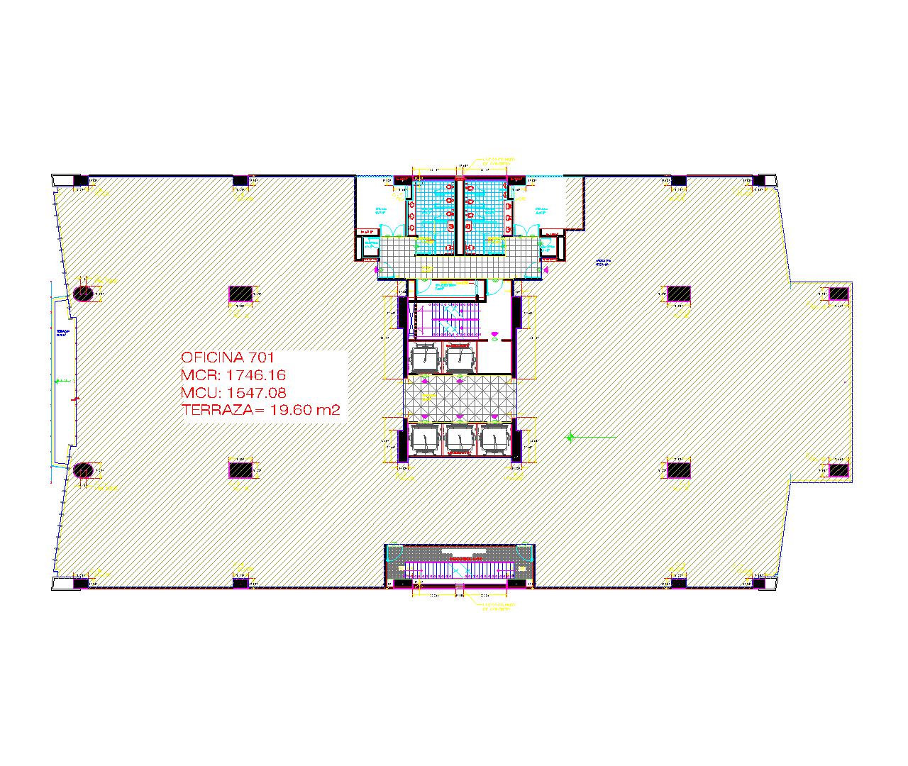Áreas prediseñadas para la instalación de equipos de aire, redes de telefonía, entre otros, que permite la distribución de una planta completa sin necesidad de sacrificar espacios de oficina.