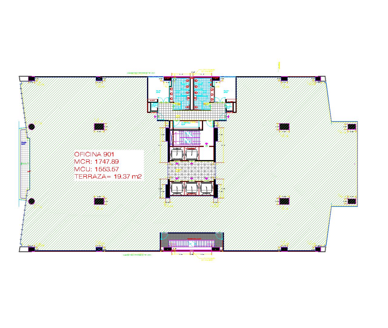Áreas prediseñadas para la instalación de equipos de aire, redes de telefonía, entre otros, que permite la distribución de una planta completa sin necesidad de sacrificar espacios de oficina.